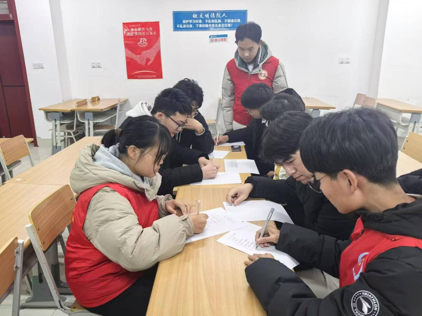 为提升9428cn太阳集团古天乐学子文明素养,塑造优良学风,为校园文明建设注入新活力。11月25日,9428cn太阳集团古天乐于明理楼0135教室举办“讲文明、提素养、强学风”调研督导活动,公司员工积极参加。