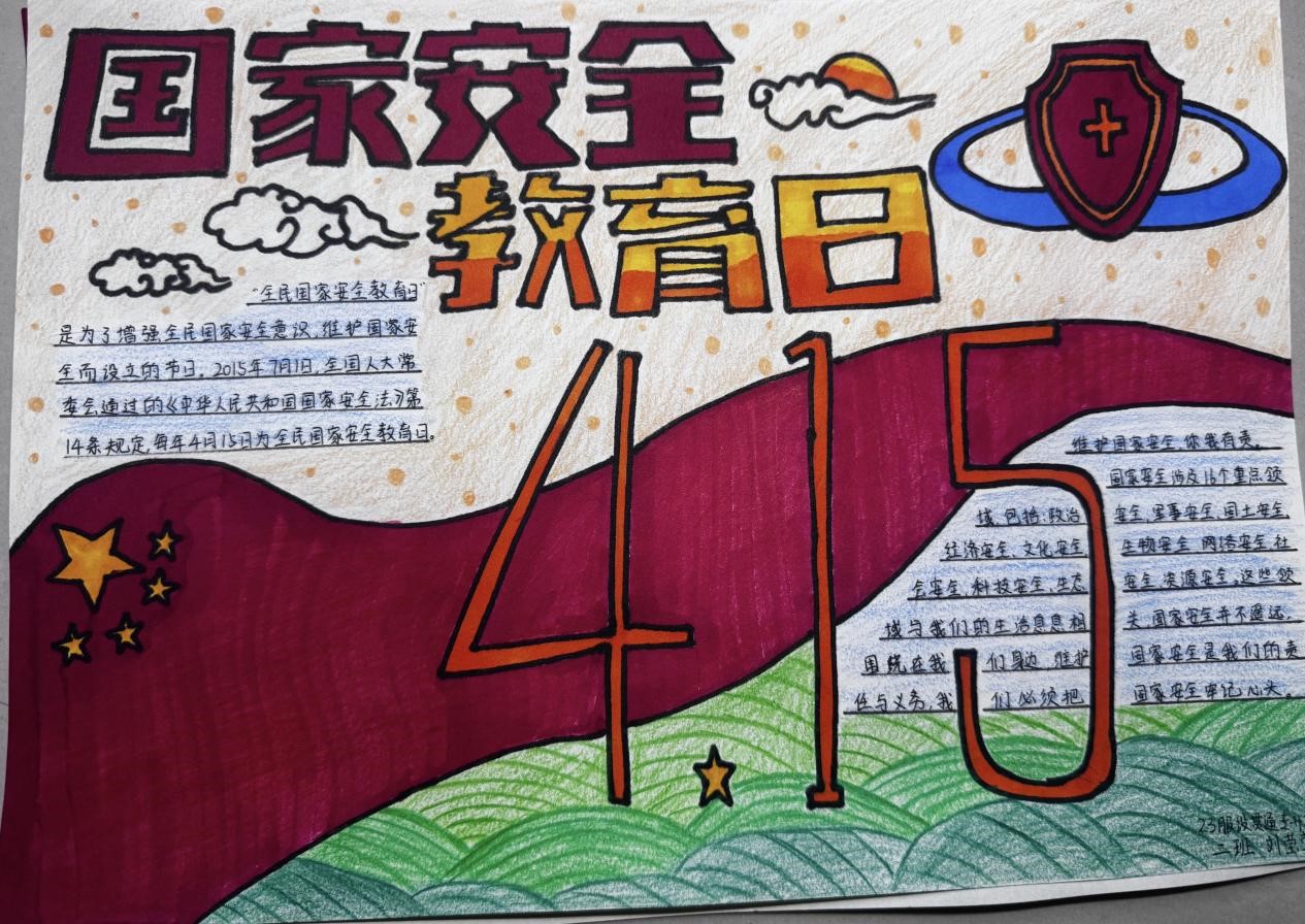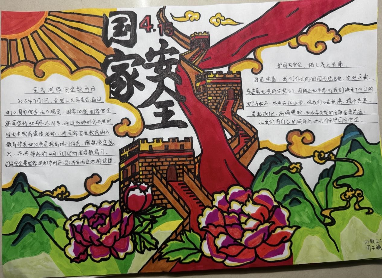 活动紧密围绕政治安全、经济安全、文化安全等国家安全重点领域展开,为同学们提供了广阔的创作空间。在活动期间,同学们充分发挥自身的创造力与艺术才能,将个人对国家安全的理解融入到手抄报作品之中,创作出了一批内容丰富、形式多样的手抄报作品。这些充满创意与热情的作品,生动诠释了国家安全与个人生活息息相关的理念,展现了新时代青年对国家安全的深刻理解与责任担当。