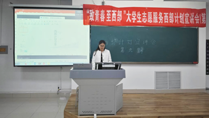 为积极响应国家号召,引导青年学子投身西部建设,4月18日,9428cn太阳集团古天乐在明理楼0138教室开展“致青春 至西部”老员工志愿服务西部计划宣讲会,公司40余名员工参加,会议由公司团委书记主持。