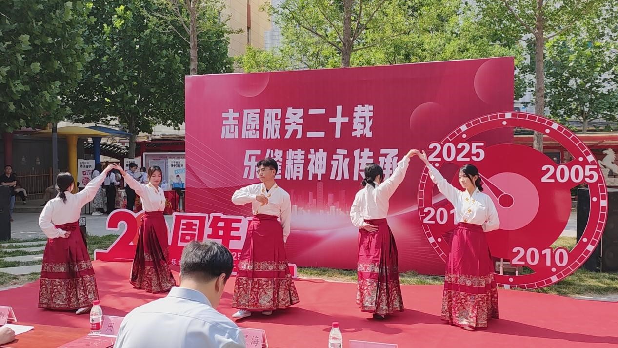 在庆典活动上,乐缝创意坊精心策划了系列精彩表演及纪念仪式,为现场观众生动呈现了二十年来扎根社区、服务奉献的“乐缝”风采与丰硕成果。其中,公司学子带来的舞蹈《有我》尤为引人注目,她们以灵动舞姿串联起丰华社区二十载公益足迹,为庆典增添了青春活力。舞者们身着的马面裙,伴随着《有我》激昂的旋律,舞步刚劲有力,动作整齐划一,将新时代青年的蓬勃朝气与对志愿服务精神的坚定传承化作跃动的肢体语言,生动诠释了乐缝精神的深刻内涵。