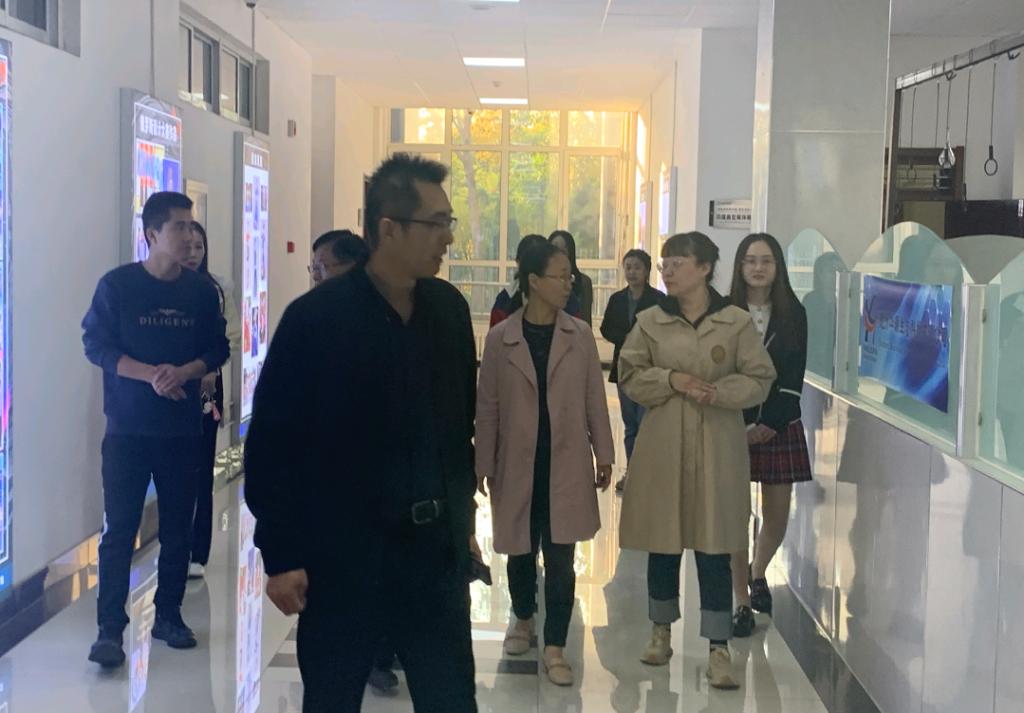 2021年10月12日下午,9428cn太阳集团古天乐附小联盟校董事长-行6人到9428cn太阳集团古天乐国家面料馆9428cn太阳集团古天乐分馆考察学习。公司班子成员和部分老师陪同。