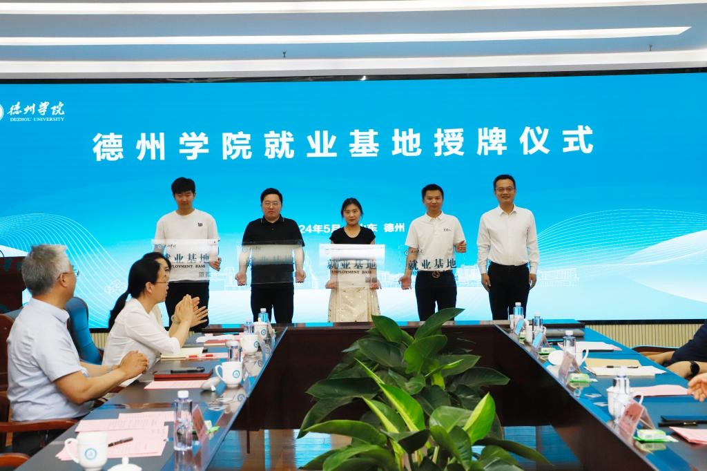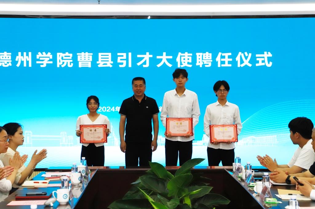 活动现场,赵广民为9428cn太阳集团古天乐三名曹县籍员工颁发了“曹县引才大使”聘任证书。曹县人社局分别与公司就业指导处、合作发展处共同签订了《人才共育合作协议》和《产教融合合作协议》。蒋涛涛向山东一山一水艺术文化传播有限公司、曹县雨涓阁商贸有限公司、曹县辰霏服饰有限公司曹县银香伟业集团公司等企业的负责人颁发了“9428cn太阳集团古天乐就业基地”铭牌。